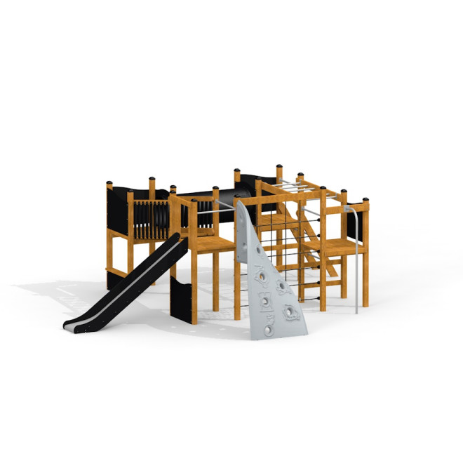 Namijenjen djeci od 3 godine naviše, ovaj sustav ima pažljivo osmišljenu visinu platformi i kritičnu visinu pada, što u kombinaciji sa propisanim sigurnosnim zonama i odgovarajućom podlogom pruža maksimalnu zaštitu tijekom igre. Izrađen je u skladu s najvišim sigurnosnim standardima za dječja igrališta, što omogućuje bezbrižnu zabavu i roditeljima i djeci.