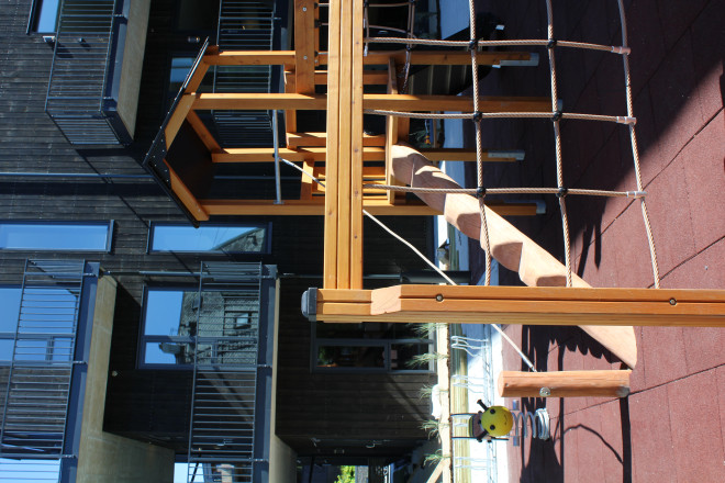 Izrađen od visokokvalitetnog ariša, ojačanih PP užadi i polietilena, ovaj penjački element jamči dugotrajnost i otpornost na vanjske uvjete, pružajući sigurnu i pouzdanu strukturu za igru.